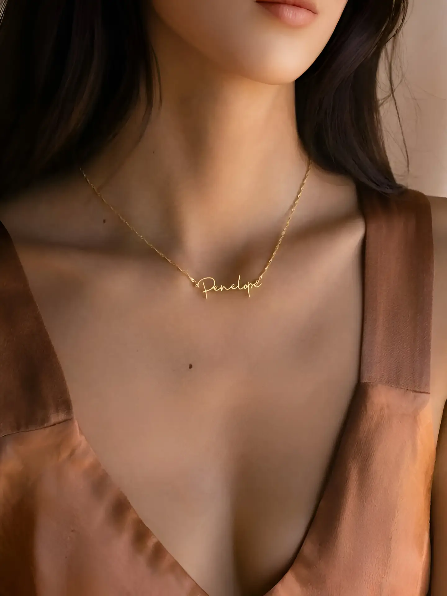 Grown Up Services offers high-quality brass laser-cut necklaces that are anti-tarnish and water-resistant. These necklaces come with a 6-month warranty and can be customized with a name in any language, making them a unique and personal accessory.